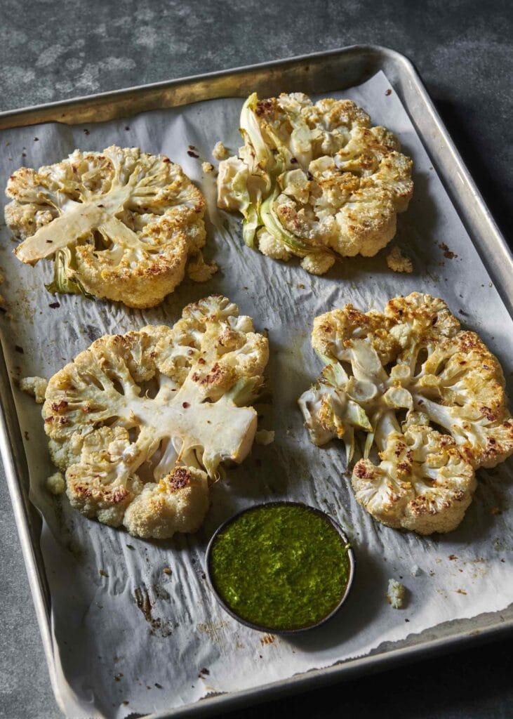 Cauliflower Steak with Roasted Red Pepper Sauce